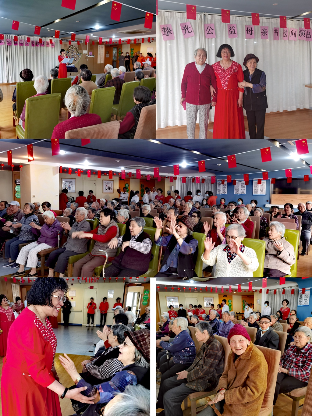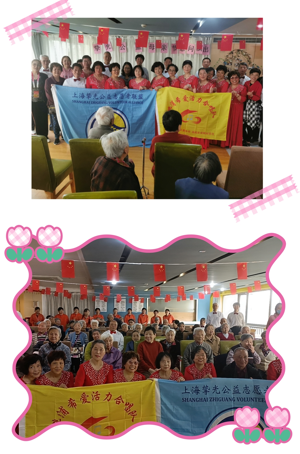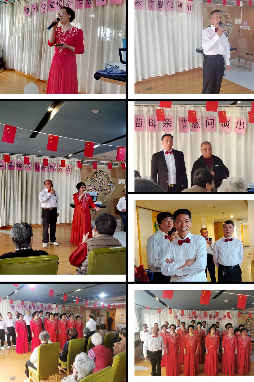 5月11日上午,普陀区桃浦块“活力之家”合唱队22位成员一起到桃浦九村长寿家园敬老院为那里的老人进行母亲节公益慰问演出。演出现场志愿者表演了歌曲《共筑中国梦》、《我有一个心愿》、《胡琴说》、《最美的歌唱给妈妈》、《妈妈的吻》、《双脚踏上幸福路》、电吹管演奏《红歌六曲串烧》……  演出现场高潮迭起,欢声不断。