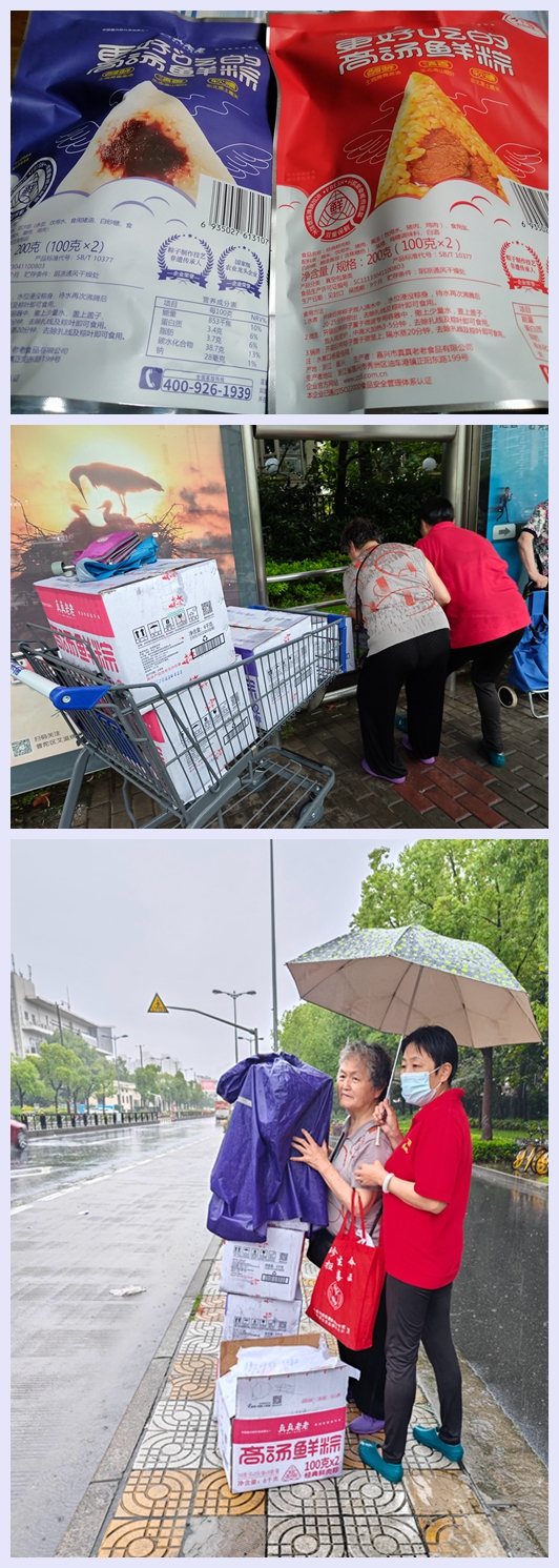 617日开始,上海进入了梅雨季。每天一场场的大雨不期而至。在端午节前夕,普陀曹杨块的块组长和志愿者就开始操心和忙碌起来了。她们从网上预约、订购粽子、去大卖场取货。
