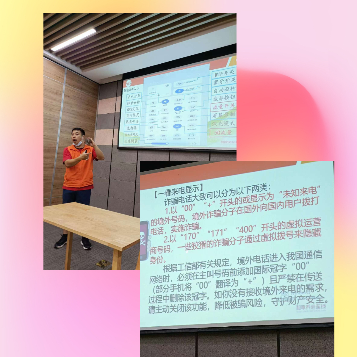 老师主要讲了防诈骗的措施:不要相信给你退款的电信、不要相信给你的“刷单好处”、不要相信要求你转移到隐蔽的角落接听电话……