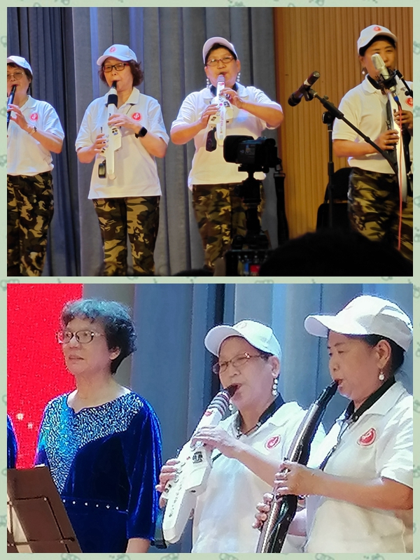 我们曹杨块有三位会员参加:颜新美、徐慧丶王丽萍。她们分别表演了陶笛、电吹管演奏和大合唱。整台节目精彩纷呈,现场掌声不断,气氛非常热烈。表演者满怀深情地吹、拉、弹、唱,歌颂伟大的祖国,歌颂伟大的中国共产党走过百余年的光辉历程、及用热血和生命写就的红色华章。