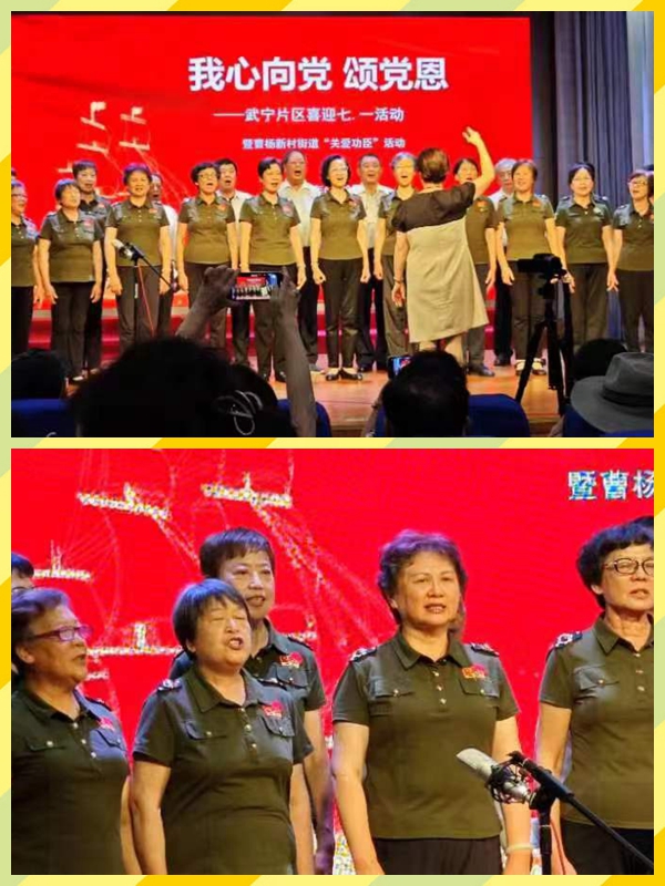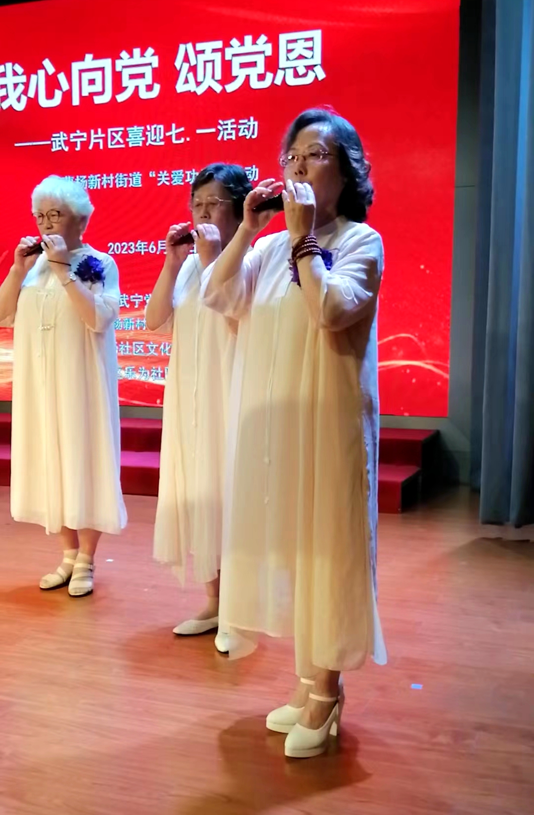 在这次"庆七一"的演出中,曹杨块的三位会员,不仅积极参加,而且表现出色,因为她们把爱党爱国的深深情怀付诸于行动。