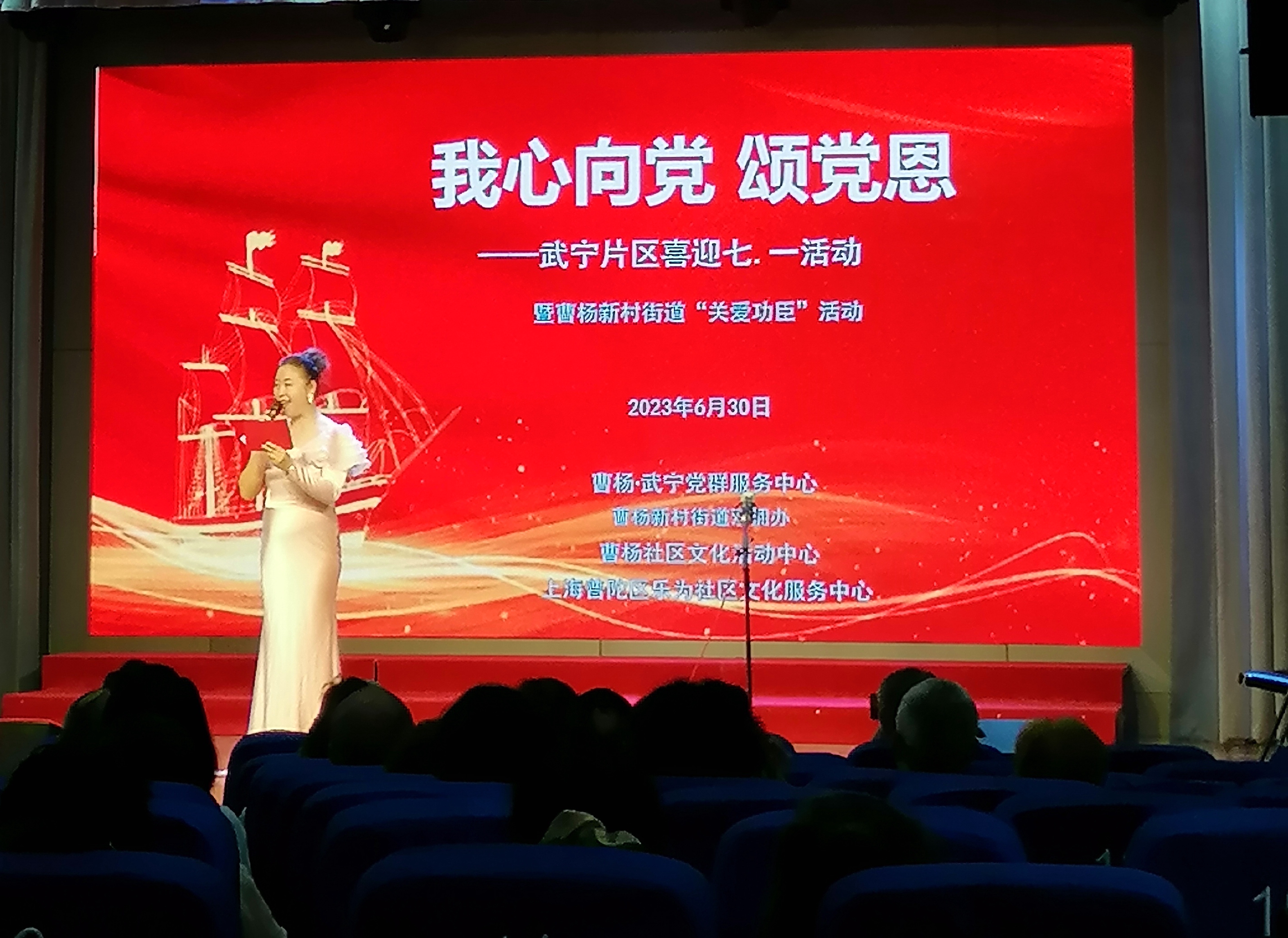 在喜迎中国共产党成立102周年之际,630日下午1时,由普陀区曹杨新村街道组织的"我心向党颂党恩"大型演出活动在曹杨社区三楼剧场举办。