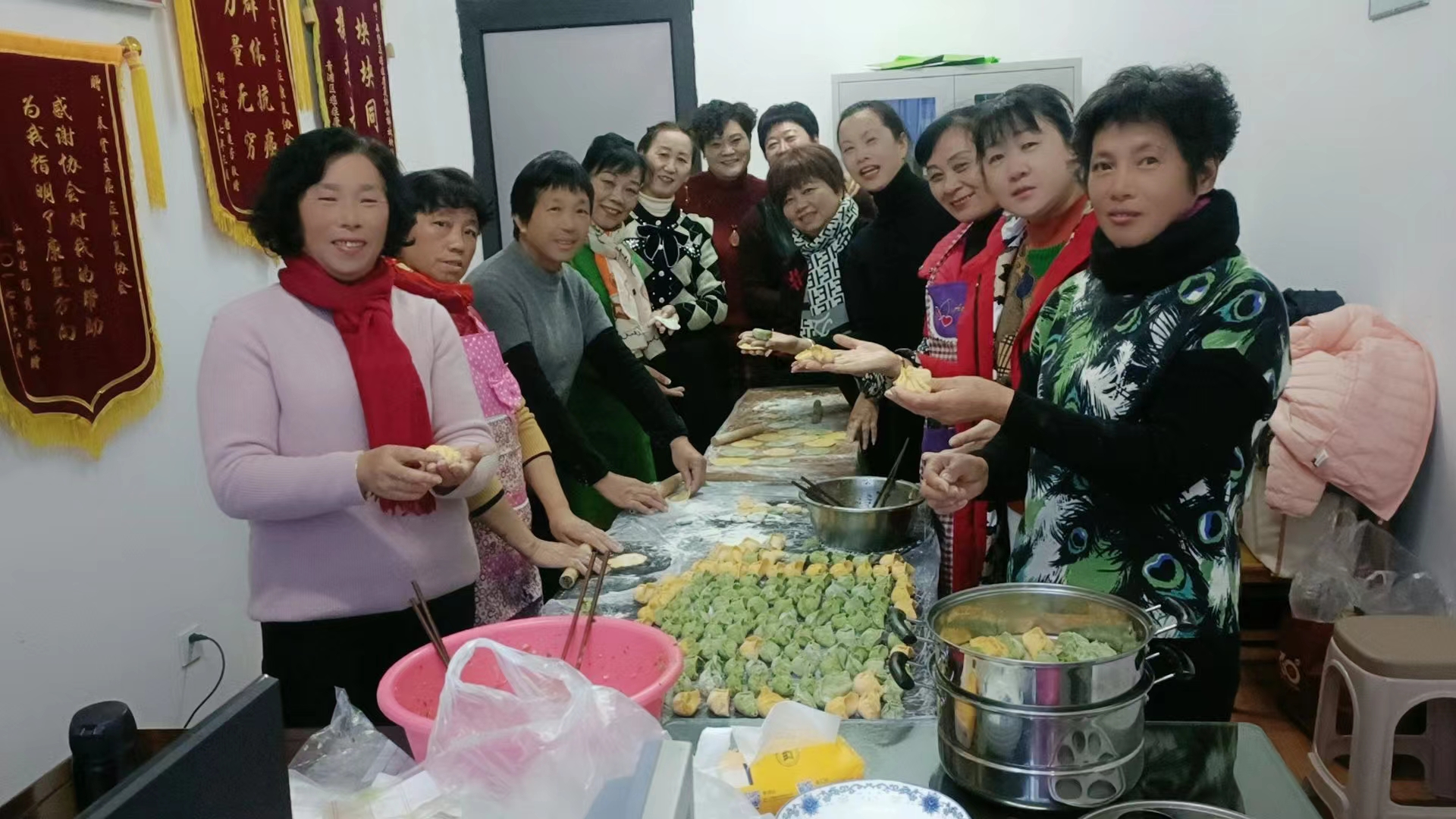 近日,上海气温骤降,寒风凛冽,寒意阵阵,但是奉贤区癌症康复协会活动室却热闹非凡,原来是一群会员相约在协会里一起迎接冬至节气包饺子活动。大家调馅,揉面、擀皮子、包饺子,蒸饺子,纯手工制作,忙的不亦乐乎,一片热闹的气氛。