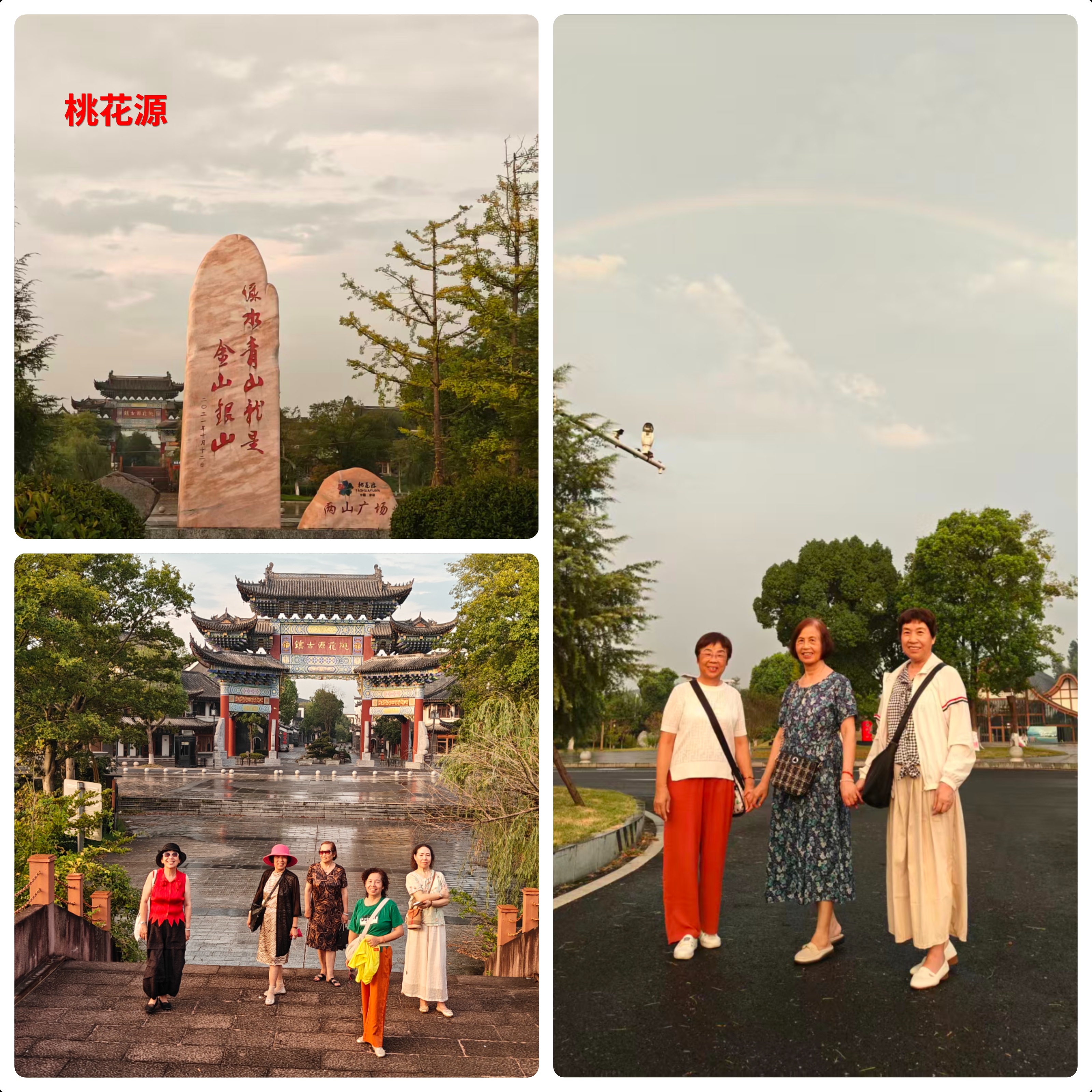 清晨,旅游大巴缓缓驶离上海,途经江西九江湖口县。这里是中国第一大河长江与中国最大的淡水湖鄱阳湖的交汇处,在石钟山下合流,形成了江湖两色的景观。接着,大巴前往湖南岳阳楼与洞庭湖,让们感受江湖的壮美,体会诗与远方的意境。随后,大巴来到常德市桃花源古镇,这里山水相依,青石街道蜿蜒,古寺古乡建筑与自然景观融为一体。傍晚时分,雨后彩虹与桃林、小桥、流水等构成了一幅美不胜收的画卷。在洪安镇游览时,们可以感受历史风貌,追忆沈从文笔下《边城》的故事。这里有名的三不管岛、一脚踏三省标志打卡点、拉拉渡船,还有当地的特色美食——一锅煮三省(重庆腌菜、贵州豆腐、湖南的鱼),这些体验让人印象深刻。