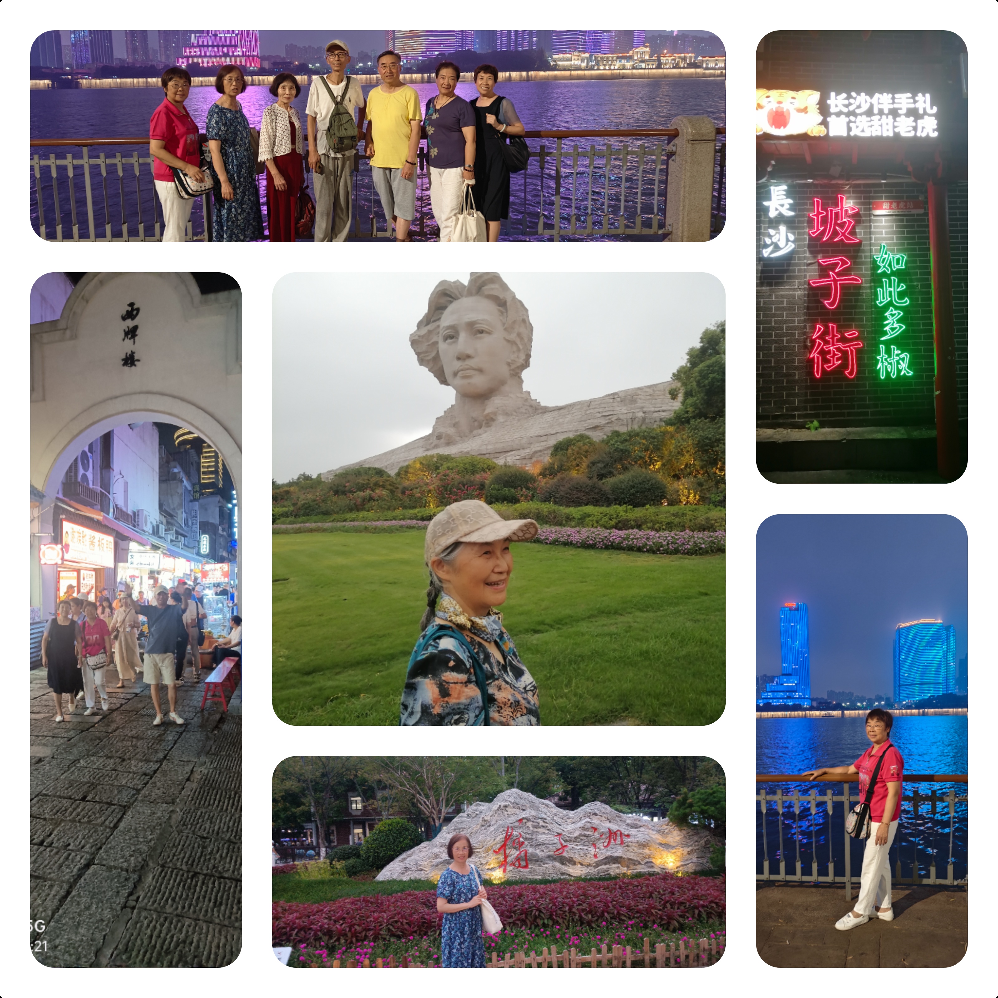 贵州结束后,们返程回上海,途经长沙,夜游橘子洲头,游览了青年毛泽东雕像广场。随后沿江漫步,感受漫江碧透的诗意。接着打卡长沙美食坡子街,这里是特色美食的集中地,网红小吃云集,街道充满烟火气,夜生活热闹非凡。在长沙我们好多会员因年满65周岁享受到了公交免费的优惠待遇。又途经上饶,品尝当地美食,专访了导游的新居。次日下午回到上海。