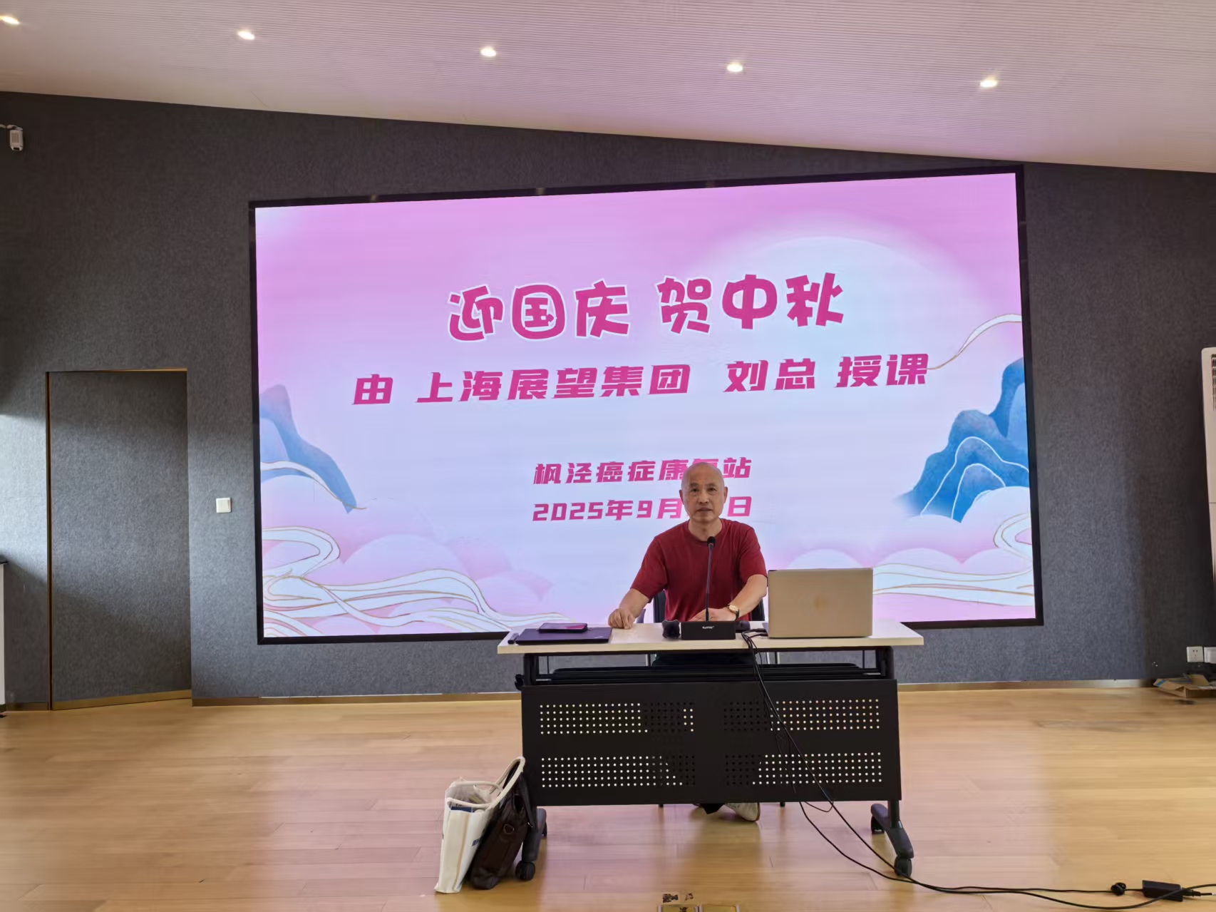 金秋送爽,丹桂飘香。在这满载收获喜悦的季节里,我们迎来了中华人民共和国成立76周年和象征团圆美满的中秋佳节,在双节同至,家园同心的美好时刻。我们枫泾癌症康复站于2025928日下午1:00在镇文广中心301会议室,由全体会员参加了一场《庆国庆,迎中秋,双节同辉共团圆》的主题活动。活动内容丰富,情谊满满,活动始终洋溢着欢乐的气氛。