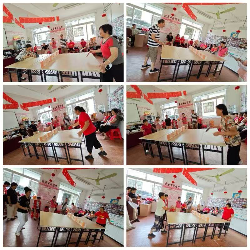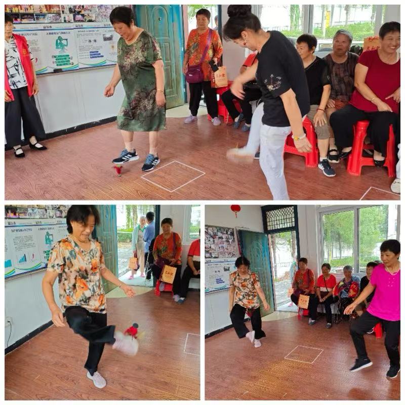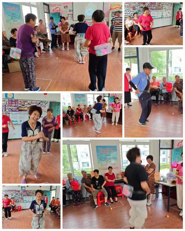 然后我们张堰站第二届趣味运动会开始。要求70岁以上会员自愿参加,70以下会员必须参加。运动会设立了多个项目1.抖球,2.踢毽子,3.原地踏步,4.筷子挟台珠,5.打乒乓球比赛。比赛规则,时间定在一分钟,如抖球,看谁抖出台球最多为一等奖。每个项目多设一等奖一名,大米5斤,二等奖二名,毛巾一条,或洗衣粉一包,三等奖三名,精制盐一包。会员们都极积参加这次比赛,做到友谊第一,比赛第二,活动开展非常顺利,也非常生动,有趣,得到奖的会员,都领到奖品,最后拍照留念。