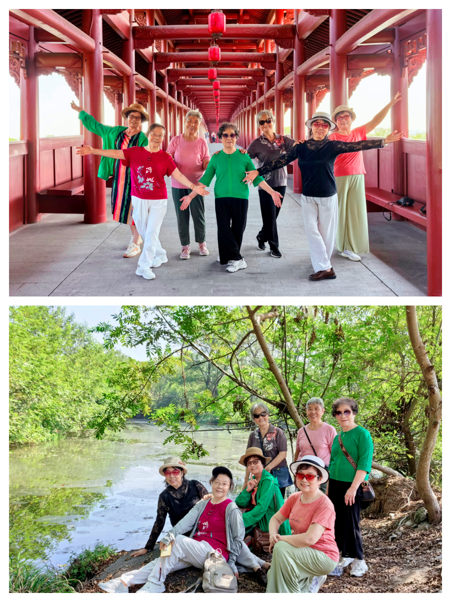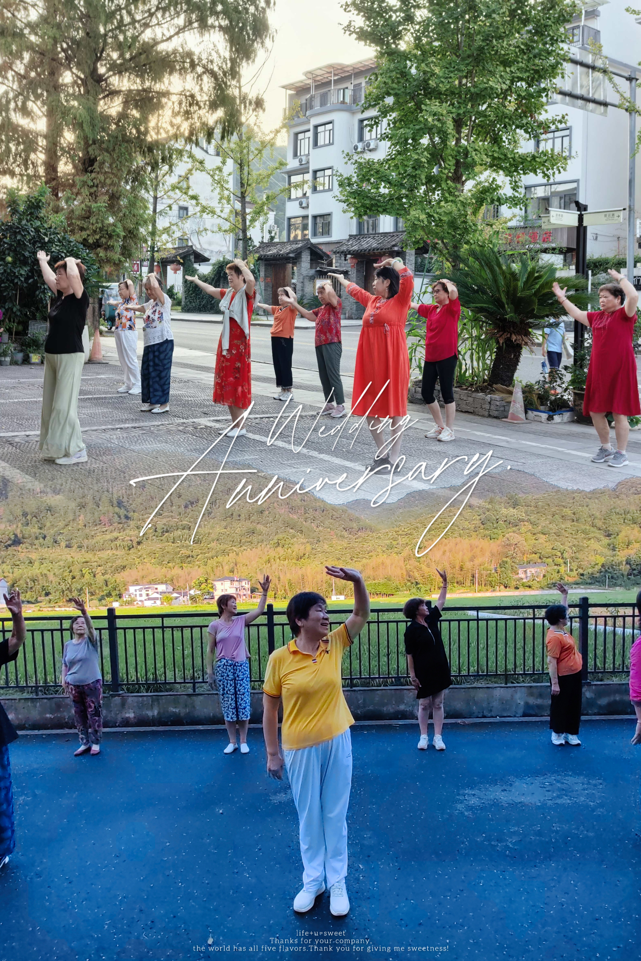 在丽水康养5日游的日子里,每天早晨6:30~7:00是会员们做健身操的时间。这次姚素贞老师带来了新的内容:健康拍打操。她认真地教每一个动作,会员们也认真地学。虽然当地气温高达36~37度,大家热得全身冒汗,仍乐此不疲。