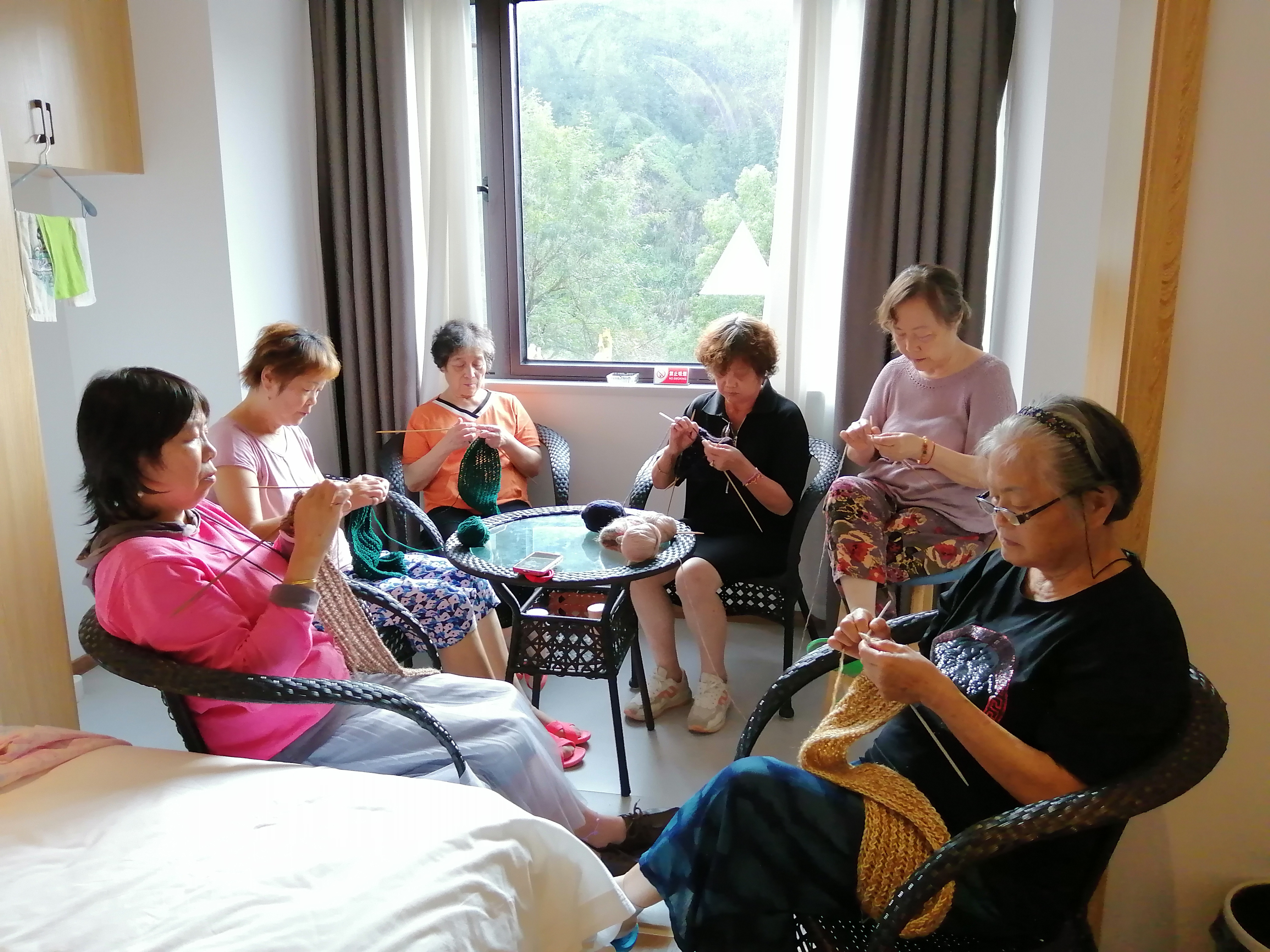 另外,编织小组也在每天下午的休息时间,认真地编织绒线帽、围巾等,为以后敬老院的慰问活动准备礼品,真是可圈可点,必须点赞!