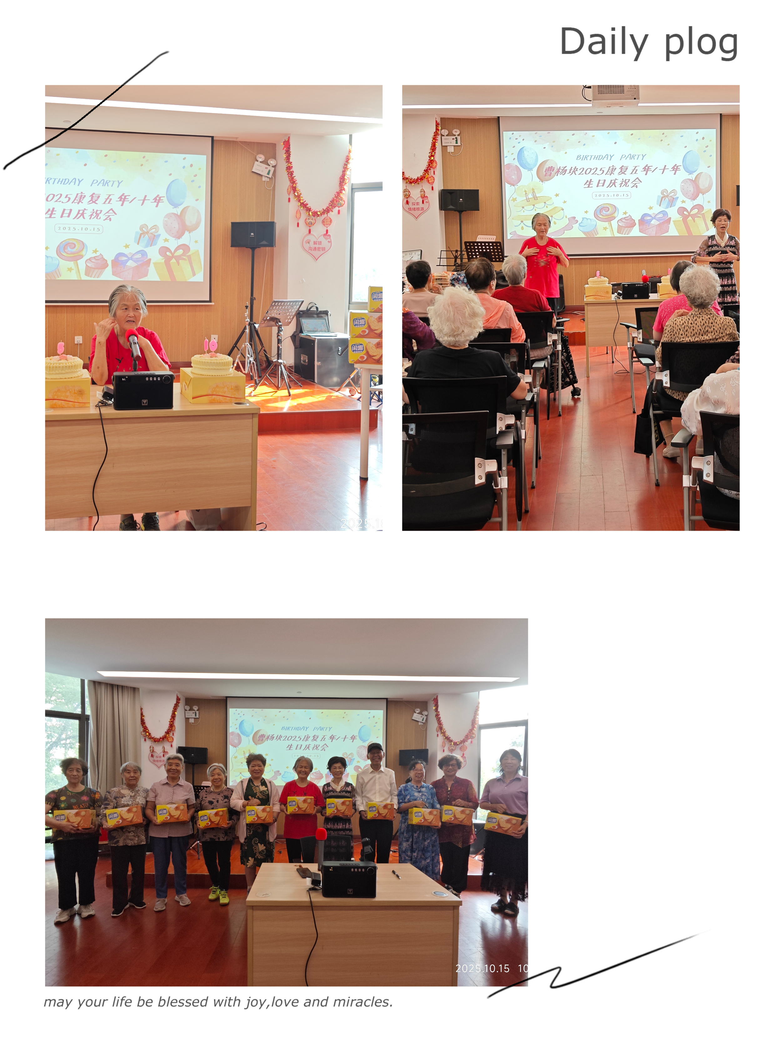 我们块的姚素贞老师和陈希平会员,因故未来,还特意给两位寿星发来生日祝贺。这就是我们曹杨块的精神。在这个大家庭中,我们每一个人都是不可或缺的,正因为有了会员们的团结与默契,我们才能在挑战面前毫不退缩,携手并肩,共同克服困难。每一次的相互支持、鼓励,都是我们凝聚力的体现,让我们在风雨中更加坚韧。在这个充满正能量的团队中,我们不仅分享着快乐与成就,更共同承载着彼此的梦想与希望。让我们继续发扬这种团队精神。创造更多美好的瞬间,向着更高的目标迈进。