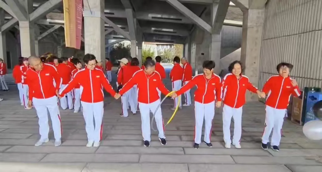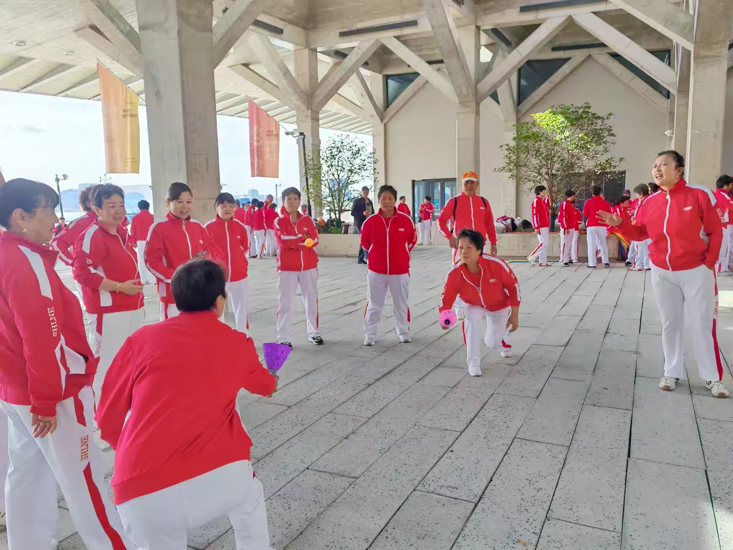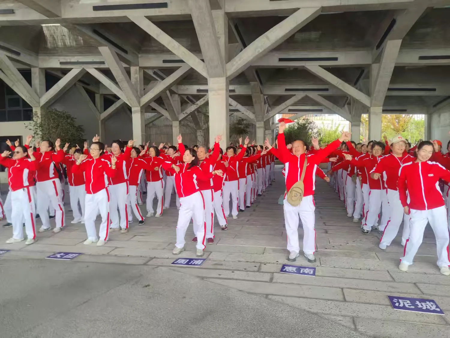 入场列队完毕后,惠南站会员瞿有红主动带领全体人员开展健身操热身。伸展肢体、活动关节,一系列简单却有效的动作,为后续运动环节做好了充分准备。