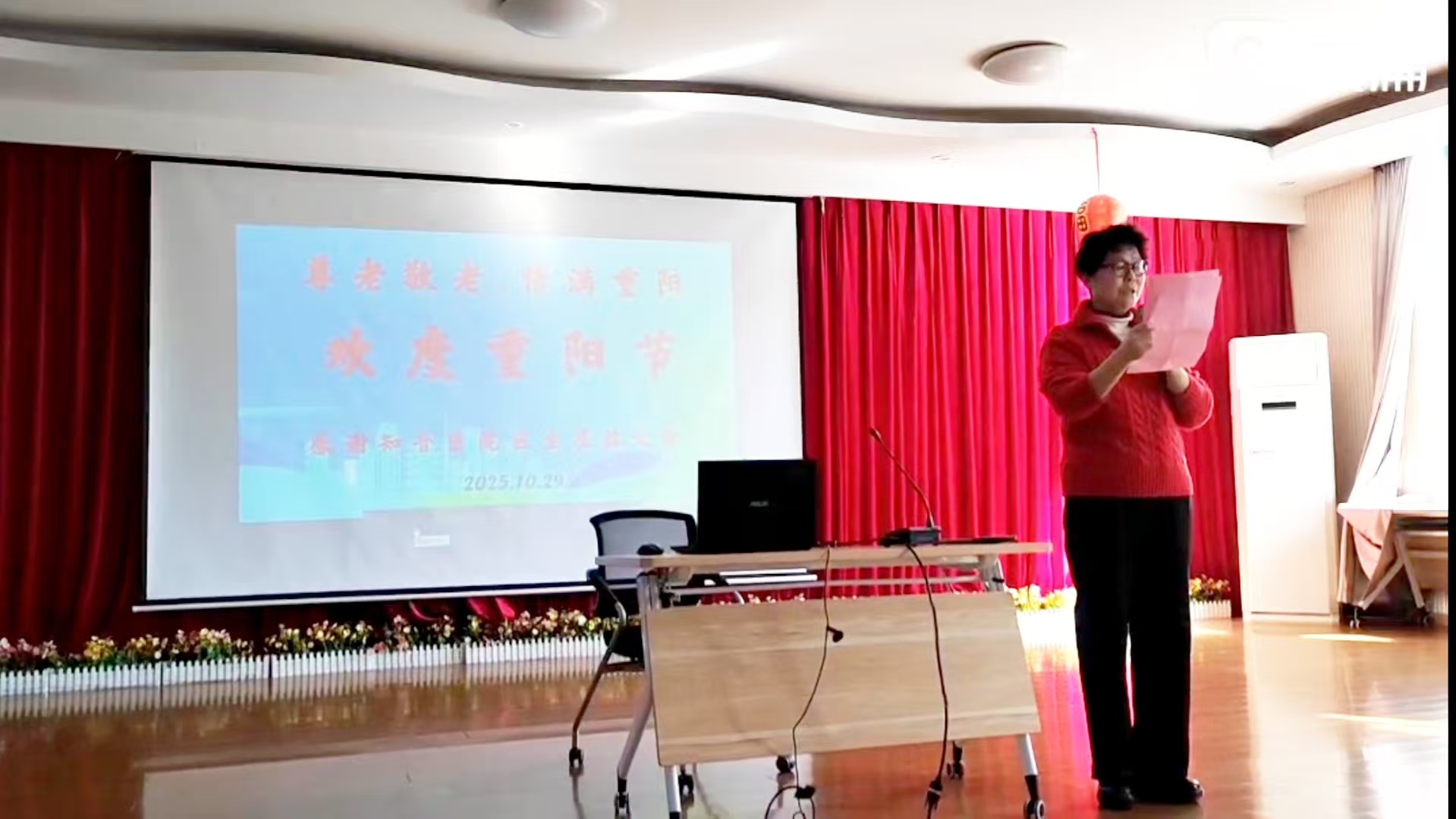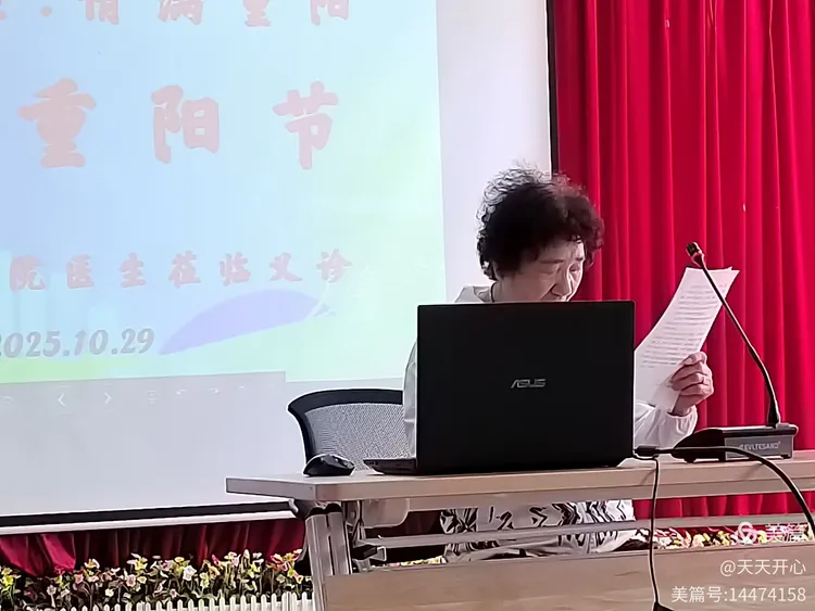 随后,房秀英指导员发表重阳节致辞。她谈到,重阳节承载着“健康长久”的美好寓意,既是对自然时序的敬畏,更是对生命力量的礼赞。“无论时代如何发展,尊老、敬老、助老的传统美德永远不能褪色。”她强调,长辈是社会的宝贵财富,是家庭的坚实脊梁——他们用青春与汗水滋养了时代成长的土壤,用智慧与经验为后辈照亮了前行的道路;他们生命的每一段历程都镌刻着奋斗的印记,每一步前行都沉淀着岁月的厚重。最后,她代表大家向在场长辈送上真挚祝福,致敬他们坚韧不拔的品格,并恭祝所有老年朋友重阳节快乐、安康常伴!