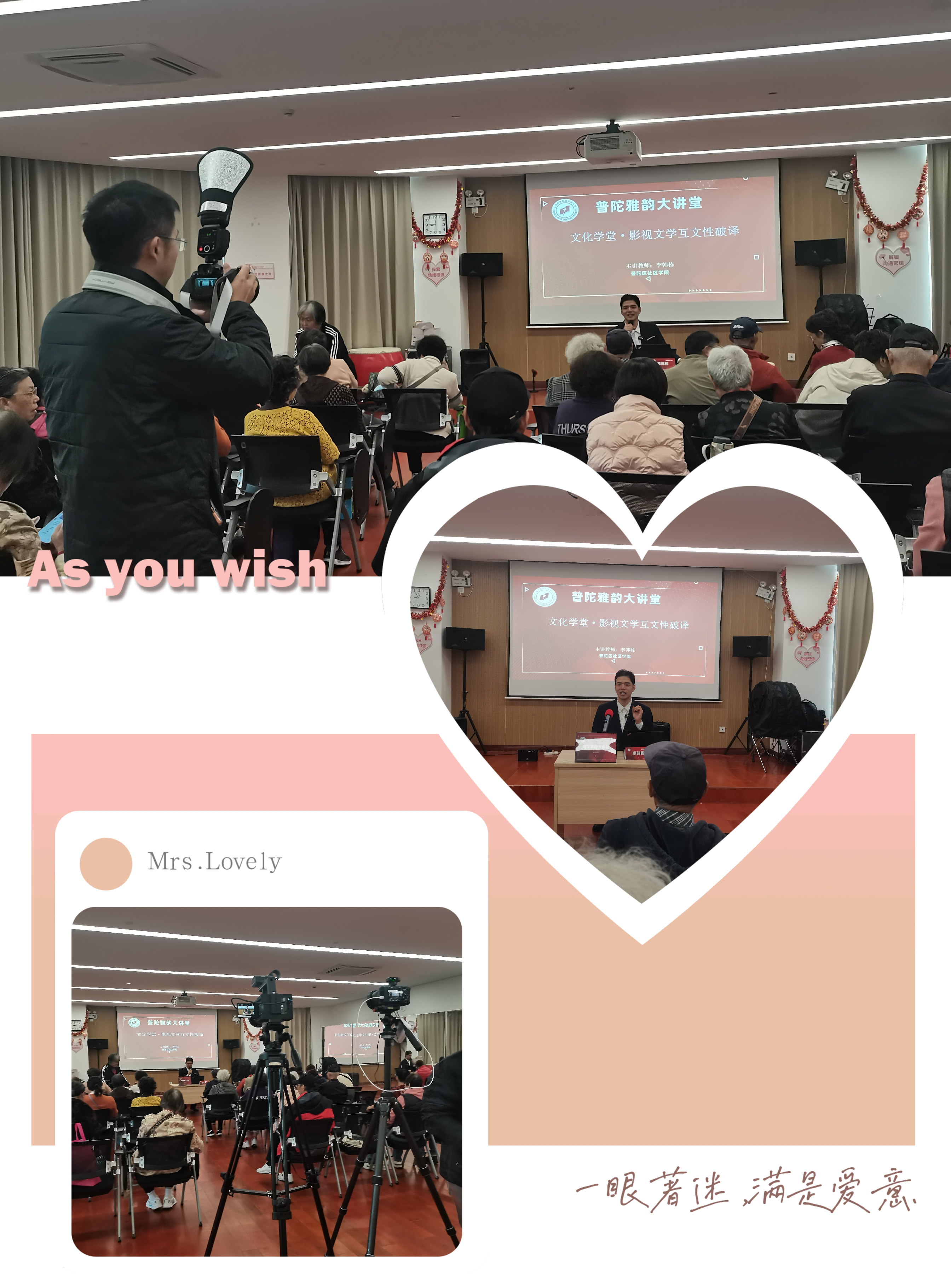 秋高气爽空气清,桂花金黄味香浓,晨露沾枝凝晓色,雀鸣唤醒晓窗明。11月5日早上8点30分,大家早早来到曹杨街道社区学校三楼多功能教室,参加每月一次的例会。这次例会是由曹杨街道社区学校“普陀雅韵大讲堂”、文化学堂提供的,主讲“影视文学互文性破译”。由李韩栋老师主讲,李老师是上海开放大学浦东东校的资深讲师,曾任上海东方电视台的编导,丰富的从业经历为他的讲座增添了深度与广度。