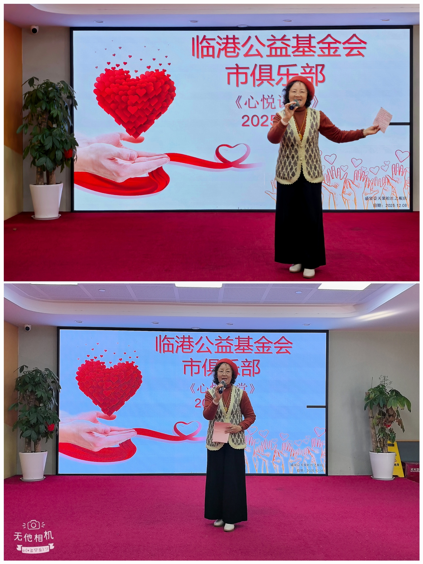 精彩节目轮番登场,暖意与感动交织:姐妹们随着张老师的伴唱轻舞手语操《一起走》每一个动作都饱含深情,感恩之意溢于言表;丁玉霞自带电吹管演绎《鸿雁》旋律婉转悠扬,赢得俩姐妹不由自主地上台即兴伴舞……  。罗来云、孙卫玉、杨颕三人携手带来诗朗诵《如果信仰有颜色》声情并茂的诵读振奋人心,引得群情激昂;沈林林执笔写下发自肺腑的《感言》诵读间,满是对“心悦课堂”的挚爱与钟情;魏景云朗诵《翻阅阳光》字句暖心感人至深;王春民分享《这个世界我们只来一次》真挚话语引发全场共鸣;裴根娣以清亮婉转的美声女高音唱响《我爱你中国》家国情怀动人肺腑;何洁华带来经典的《红楼梦》片段和《西海情歌》韵味十足;张老师独唱《明月千里》婉转唱腔声声入耳;还有苗苗与裴裴合作,用地道沪语演绎《上海谣》满是老上海的独特韵味;杨盛娟倾情演唱电影《归心似箭》插曲《雁南飞》……