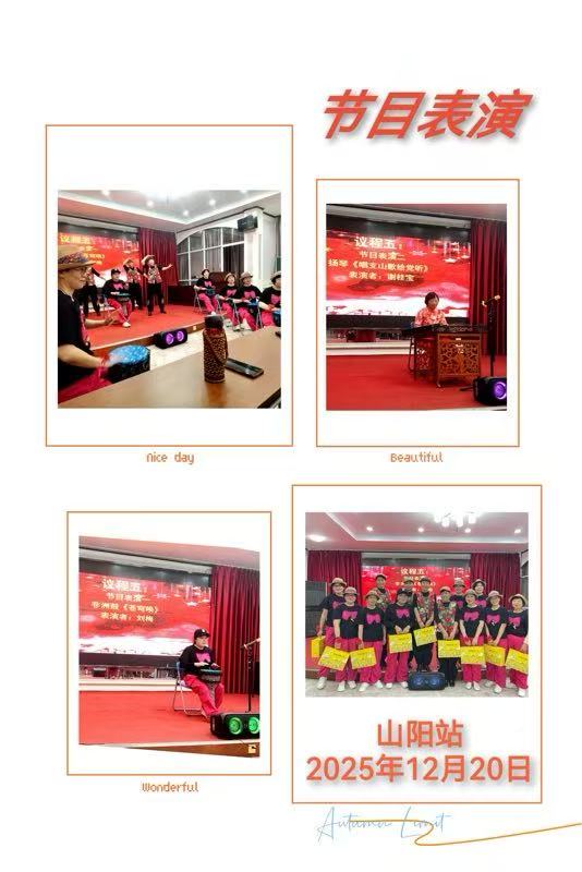 本次活动共设五项议程。活动开始,站长杨道华登台回顾2025年工作:从元宵佳节一起包汤圆、端午节包粽子话家常、重阳节登高赏秋,到日常健康交流、户外疗愈徒步,全年组织十余场主题活动;区俱乐部趣味运动会上,山阳站拿下多个项目的一、二、三等奖,尽显团队活力;大汉灵芝文艺选拔赛中,《大王叫我来巡山》(非洲鼓+舞蹈)更是斩获第一名,把康复路上的热爱唱成了舞台上的高光。同时,站长祝大家幸福安康快乐,也希望明年一如既往一起前行,让温暖常伴身边。