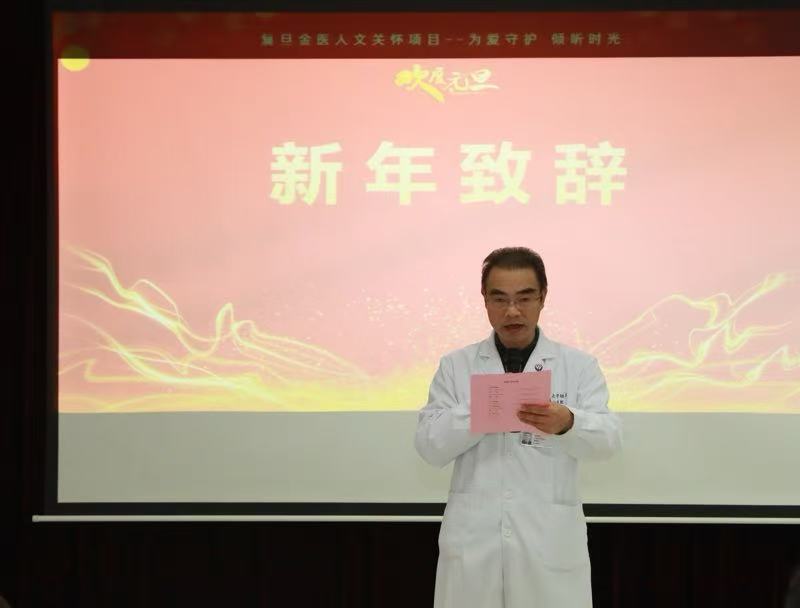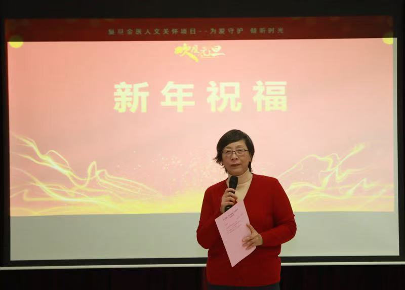 首先观看视频《抗癌勇士》,生动地记录一些抗癌勇士与病魔抗争的感人故事,饱含着生命的坚韧、勇气与智慧,以及我们金山区癌症康复俱乐部送阳光活动的照片、视频等,包括倾听时光活动的内容。院领导在新年寄语中衷心感谢俱乐部,坚持十年开展新年送阳光活动,给许许多多的病人送去冬日的温暖。今天,常会长又为病友们送上最真诚的祝愿:我们的昨天是你们的今天,愿你们的明天也会像我们的今天一样。接下来的活动由迎元旦文艺演出与进病房送祝福两部分组成。