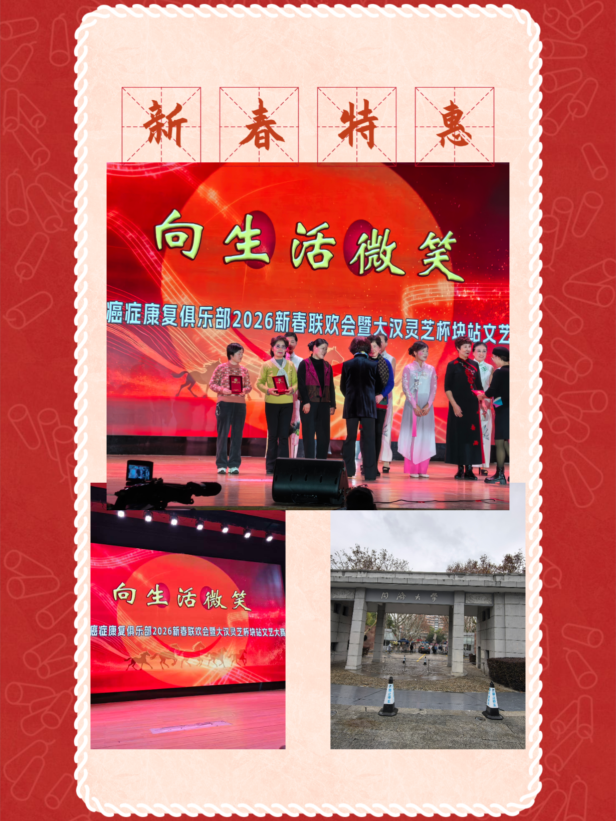 2026年1月19日,上海被淅淅沥沥的小雨包裹着,降温带来的寒意弥漫在空气里,却挡不住一处空间里涌动的滚烫暖意。今天我们普陀真如块时装队赴约参加在同济大学一二九礼堂举办的上海市癌症康复俱乐部2026“向生活微笑”新春联欢会,也见证了“大汉灵芝杯”块站文艺大赛的精彩上演,而贯穿始终的“向生活微笑”主题,恰似穿透雨幕的光,照亮了每一张脸庞,温暖了每一颗心灵。