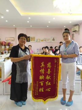活动伊始,福寿园领导刘介绍了此次活动的爱心单位:浦东新区殡管所和上海小映网络科技有限有限公司,正是有了他们的鼎力支持,才使今天的公益活动得以顺利进行。刘斌说,我们想以“中秋团圆”为契机,让大家在学习手工制作月饼的过程中,感受亲情,增加感情,团结互助,增强自信,笑对生活。接着吴会长代表虹口区癌症康复俱乐部向爱心单位赠送了锦旗,并向两个爱心单位表示最衷心的感谢!