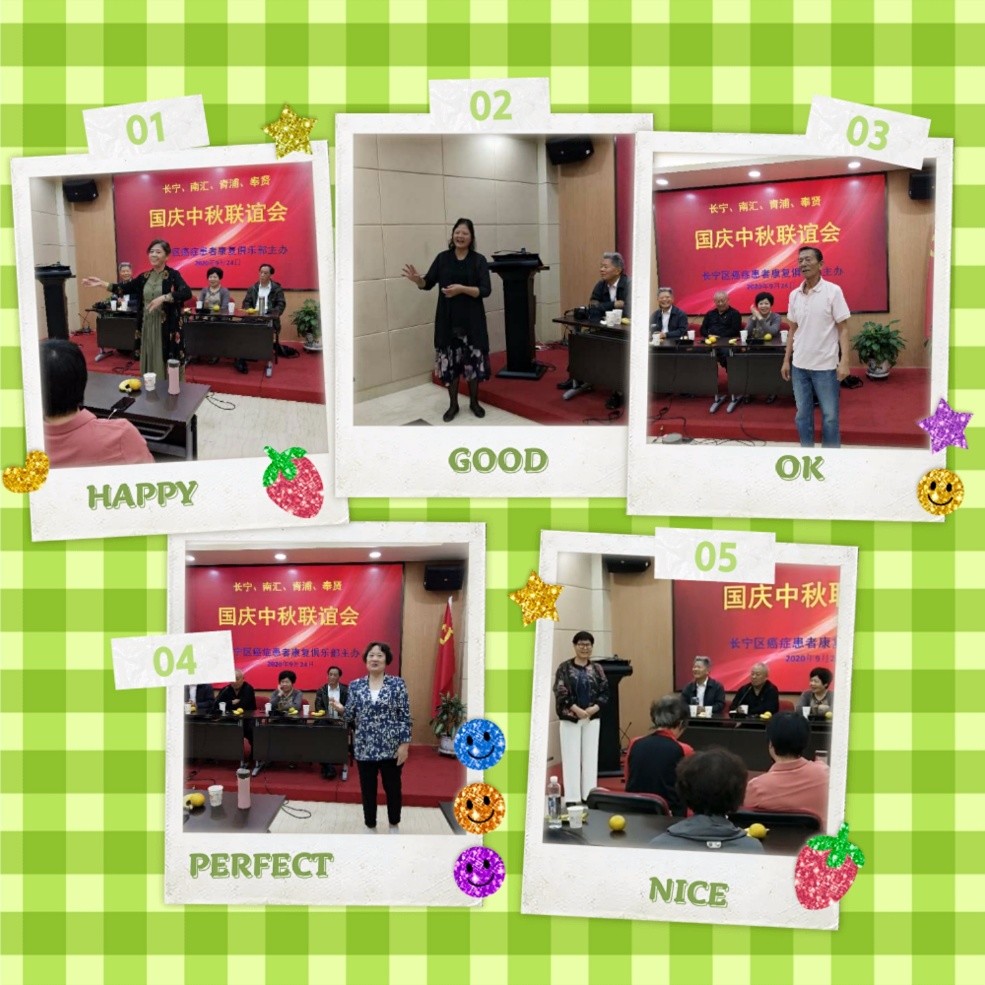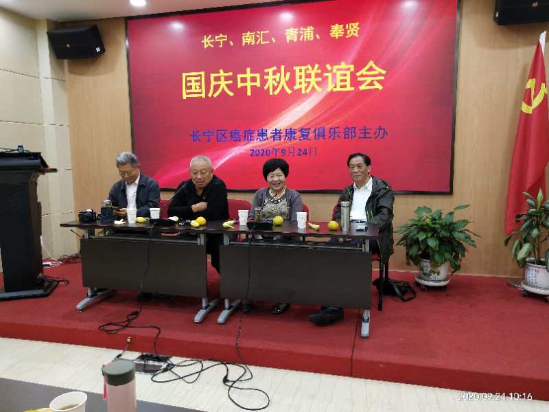 2020924日上午,由长宁区癌症患者康复俱乐部主办的长宁、南汇、青浦、奉贤四区工作交流暨国庆中秋联谊会在天山街道白领驿站党员活动中心会议室举行,四区俱乐部(协会)领导班子成员等共三十余人参加。