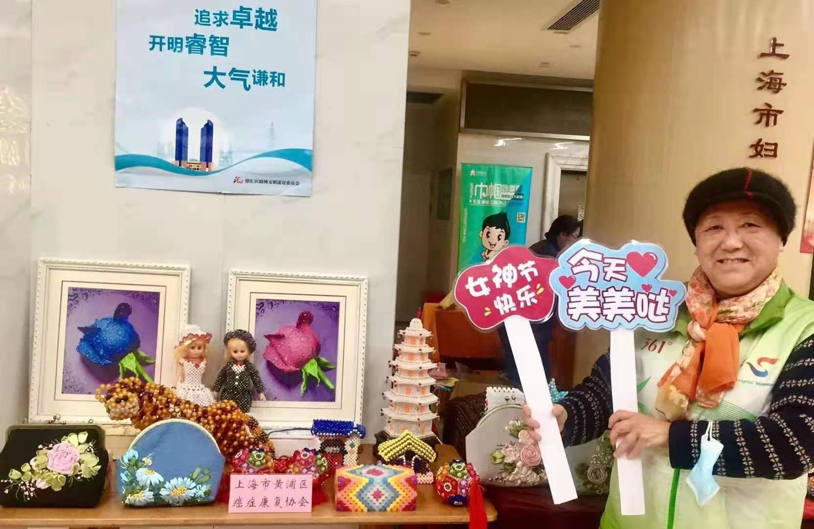 创享美好,非遗文创公益市集,展示黄浦区癌症康复协会会员的手工制作。